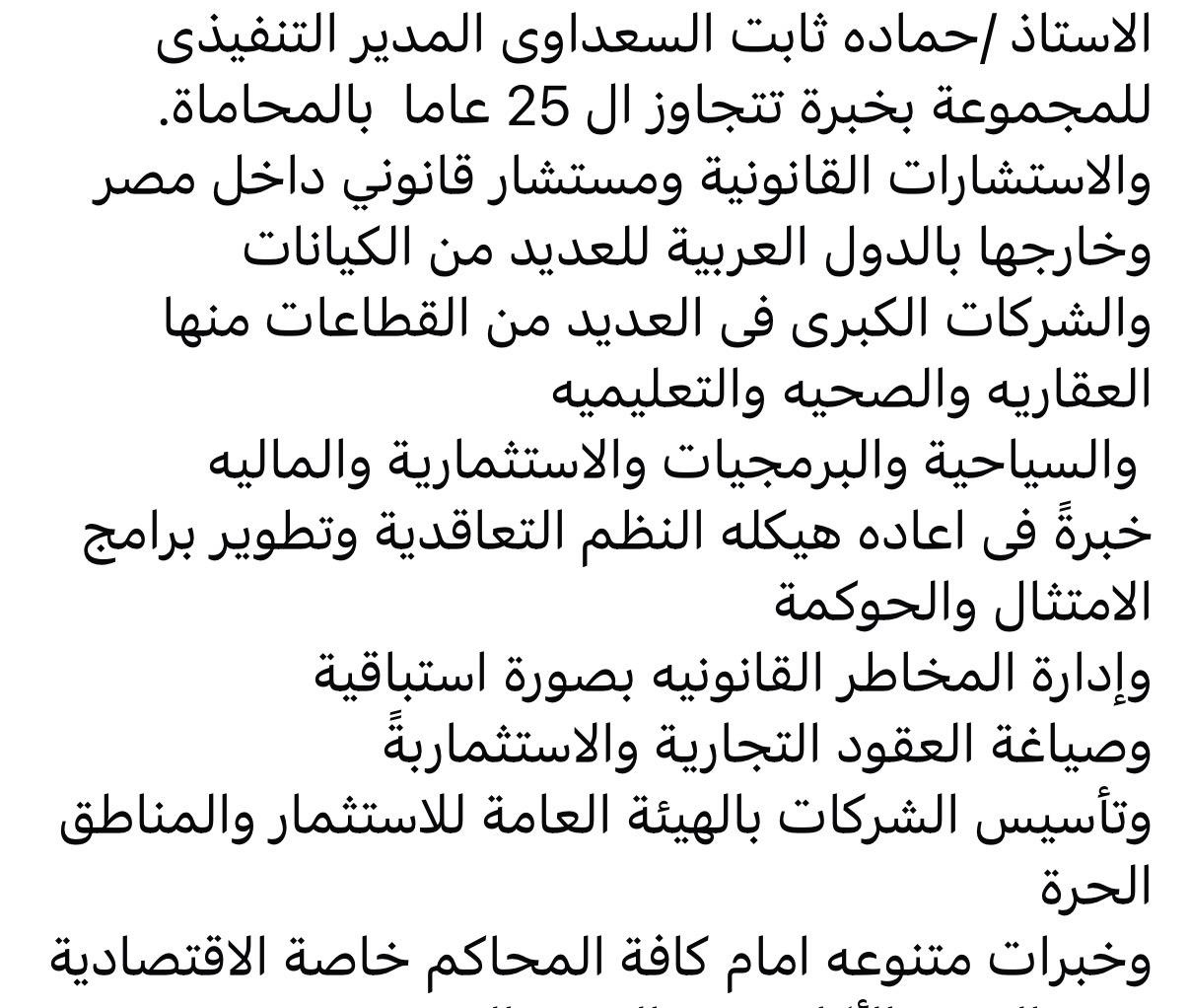 - قيادة الإدارات القانونية لمجموعات كبرى داخل مصر وخارجها.
